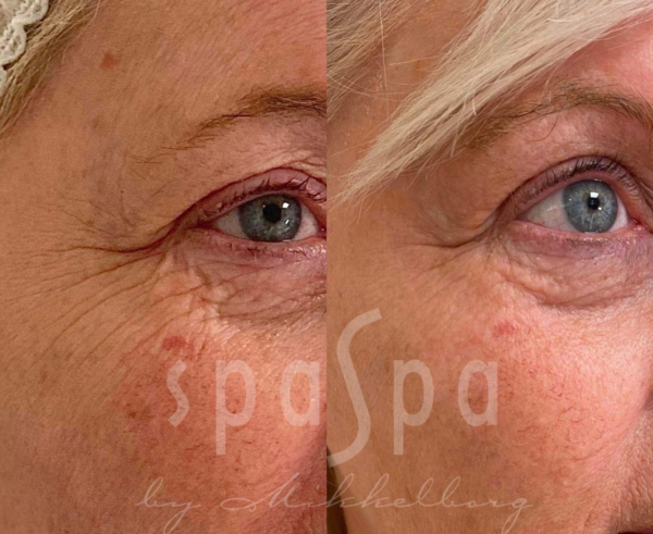 -Behandlingen gir svært god effekt ved behandling av løs hud på øvre og nedre øyelokk, på hud over og under lepper, fine linjer foran øret og i kinn.